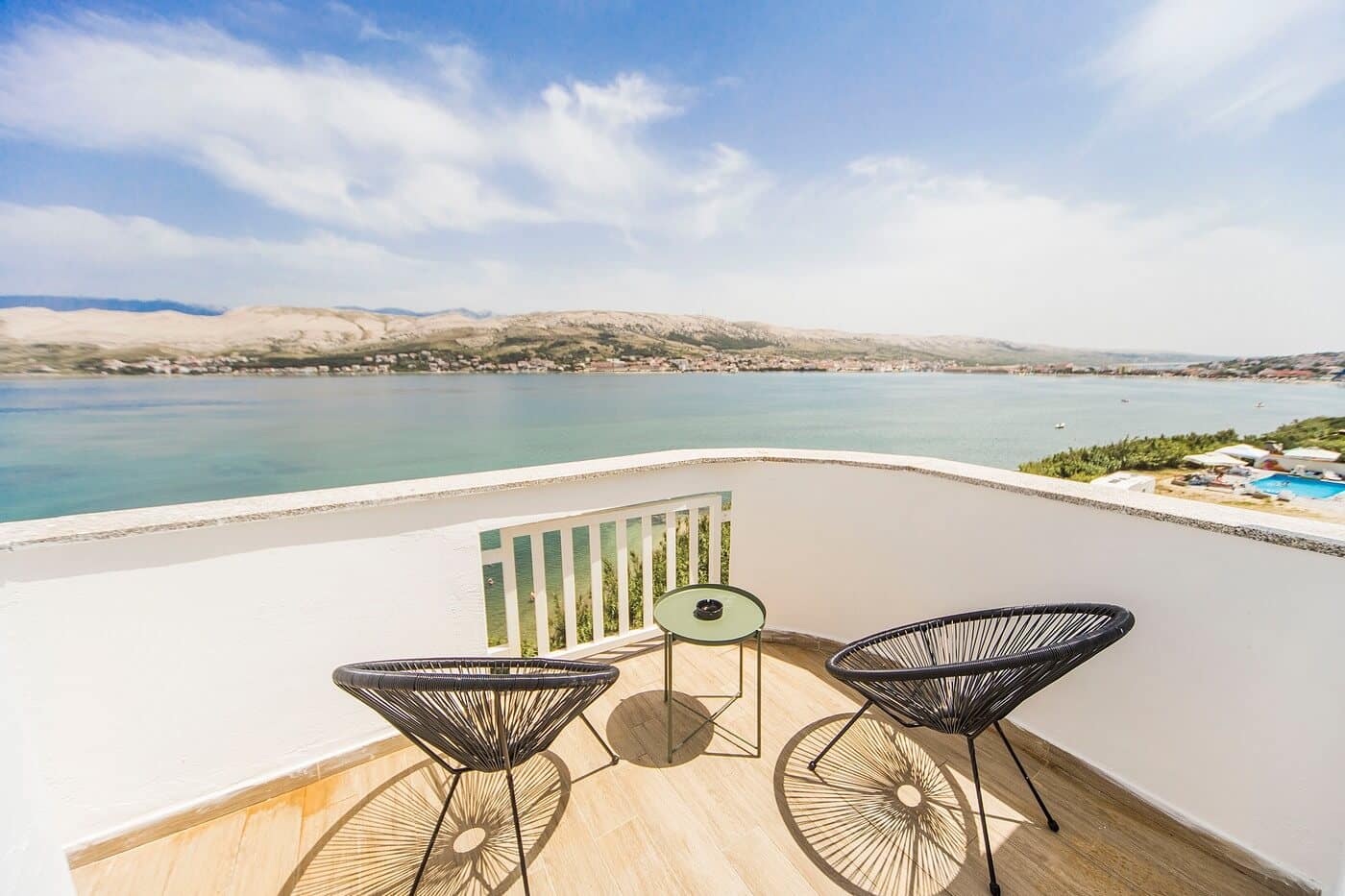 Your perfect Pag family escape! Our family room, with two separate bedrooms, offers comfort and stunning views from your private balcony with wonderful sea view. An additional separate toilet adds extra comfort.